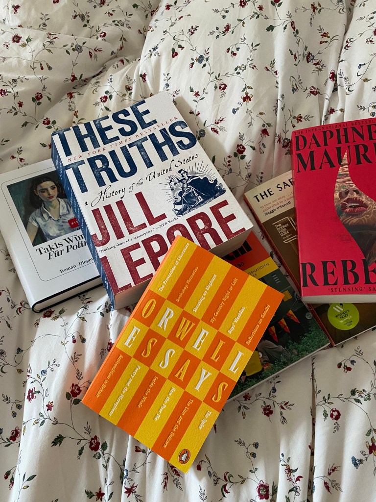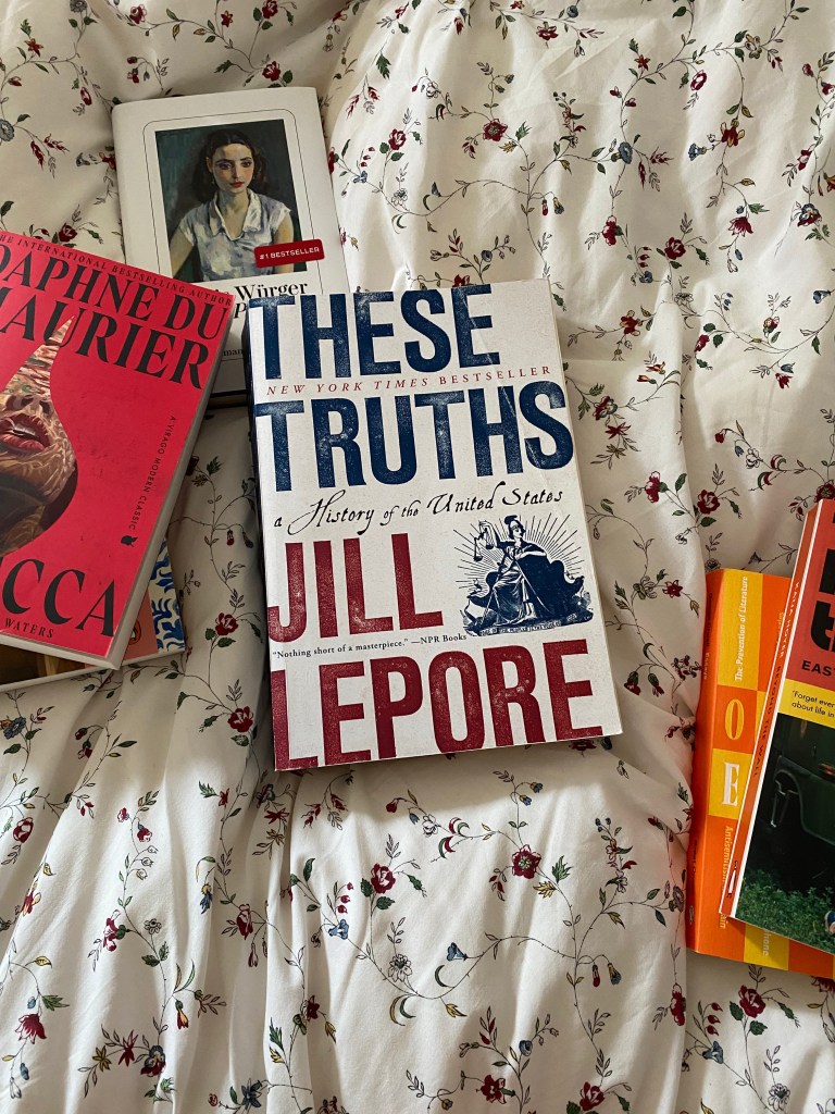 Heaven above, please let me finish this book in 2025! I have been reading These Truths by Jill Lepore for the better part of a year now and before that, it spent a lot of time on my book shelf, staring at me accusingly for ignoring it. Initially, the goal had been to read it in time for the US presidential election in autumn 2024, as this is a history of the United States. Let’s just say that didn’t go to plan. But, I’ve accepted that These Truths is not the kind of book I can read within a few days. It’s written incredibly well, but it’s very dense and if I truly want to understand what I’m reading, I have to take my time with it. So, I’ve slowly been making my way through this 800-page-beast and am currently at the half-way point, but taking a break right now for my massive Kerstin Gier rereadathon. However, I really hope I will manage to finish These Truths in autumn, as it is on my list of big books to conquer in 2025 and I can already see myself racing through it on New Year’s Eve to finish it in time. Please, let me be smart enough to avoid that destiny by simply reading it now.